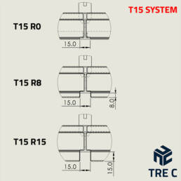 - Sistema T15: utilizza un profilo a “T” con una larghezza di 15 mm.