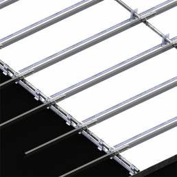 I pannelli modulari sospesi possono essere rimossi facilmente e lo spazio sovrastante rimane ispezionabile. Nel caso di nuove esigenze il cliente può velocemente riconfigurare il controsoffitto.