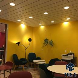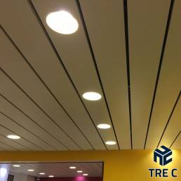 Produciamo controsoffitti metallici su misura, che coniugano un’ottima estetica con la peculiarità di consentire la creazione di vani tecnici per il passaggio di impianti tecnologici (areazione, illuminazione, antincendio e molto altro).