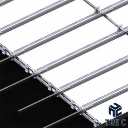 La struttura modulare del sistema consente di assemblare il controsoffitto in modo semplice e veloce, con pochi componenti normalmente disponibili a magazzino.